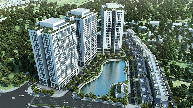 • Quy mô dự án: Bao gồm 03 tòa chung cư cao 25 tầng, 83 căn biệt thự và liên kế, công trình công cộng dịch vụ cao 2 tầng
